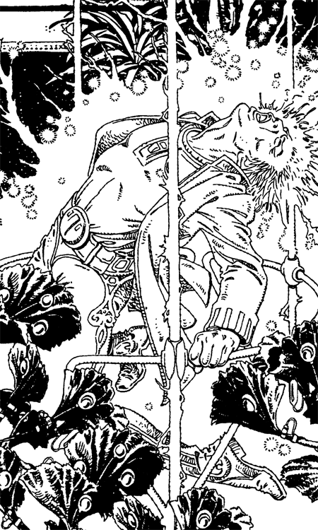 Ближайшая луна висела низко над головой. Неправильной формы, вся в зазубринах. На самом деле это был притянутый к планете астероид. Хайфенс довольно часто видел ее, поэтому не стал выходить из жилого помещения, чтобы пронаблюдать, как она несется по небу со скоростью атмосферного флайера, задевая звезды на пути. Вместо этого он потел над бумагами, что само по себе было странным, ибо он являлся преступником и вся его деятельность на Лорен-2 должна считаться преступной. И еще странно заниматься бумажной волокитой в комнате со стальными ставнями и исполинским белоголовым орлом — между прочим, непривязанным, — сидящим на шесте радиусом в три дюйма, укрепленном в стене. Но работа с бумагами не была настоящим делом для Хайфенса. Единственного помощника ранили ночные бродяги, и тайный корабль Компании Кодиус забрал его туда, откуда все эти корабли прилетали. Так что Хайфенсу приходилось работать за двоих. Ему было известно, что он являлся единственным человеком в этой Солнечной системе. Он услышал сопение. Ситка Пит тяжело поднялся и припал к поилке. Он лакал холодную воду и чихал. Сурдаф Чарли проснулся и издал недовольное ворчание. В ответ раздались еще ворчание и бормотание. — Тихо там! — прикрикнул Хайфенс, продолжая работу. Он закончил отчет по климату и ввел данные в компьютер. Пока машина переваривала информацию, он открыл данные по складу, проверяя остатки продовольствия. Затем начал заполнять вахтенный журнал: “Ситка Питер разрешил наконец проблему уничтожения одиночных сфексов. Ему объяснили, что бесполезно пытаться проникать в их убежища — как на равнине, так и в горах. Сегодня Семпер заметил, что группа сфексов направляется к станции, привлеченная запахом убитого товарища. Ситка спрятался, подкараулил врагов, а когда они явились, высунулся из засады и быстро хлопнул лапами с обеих сторон головы сфекса. Раздался громкий звук, как будто захлопнулись две створки ракушки диаметром двенадцать дюймов. Мозги сфекса разлетелись, словно сырое яйцо. Он упал замертво. Ситка убил еще двоих своими мощными лапами. Сурдаф Чарли наблюдал за ним с пыхтением, а когда сфексы напали на Ситку, он, в свою очередь, выбежал на подмогу. Я не мог стрелять слишком близко от них, и им могло прийтись несладко, хотя Фаро Нелл выбежала из медвежьего жилища к ним на помощь. Необходимость заставила Ситку Пита применитъ новую технику: он вставал на задние ноги и хлопал лапами, как это делают гризли. Битва быстро закончилась. Семпер летал вокруг и оглашал местность криками, впрочем, как всегда, не вмешиваясь. Примечание: Наггет, медвежонок, пытался вмешаться, но мать оплеухой прогнала его с дороги. Сурдаф и Ситка, как всегда, его игнорировали. Гены Чемпиона Кодиуса снова зарекомендовали себя!” Снаружи продолжались ночные шумы. Были звуки наподобие органных — песни ящериц. Хохот ночных бродяг. Стук молоточков, скрип закрывающихся дверей, а также различные варианты покашливаний. Их производили невероятно мелкие создания, занимавшие на Лорен-2 место насекомых. Хайфенс продолжал: “По окончании битвы у Ситки был раздосадованный вид. Он использовал свой трюк применительно к голове каждого мертвого или раненого сфекса, кроме тех, кто уже попал под его лапы, как будто желая показать Сурдафу, как это делается. Сколько было пыхтения и ворчания, когда они затаскивали