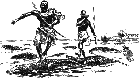 Что толкнуло целый народ поселиться на вершинах голых скал, добровольно пойти на лишения и трудности? Беспощадность завоевателей? Или желание уединиться? До них в этом краю жили низкорослые с малиновым отливом кожи бана, которых потом вытеснили курумба. Некогда догоны обитали в районе Манде (на территории царства Мали в XIII веке). Под напором полчищ врагов они отступили к нагорью. Путь им, если верить легенде, неожиданно преградил широкий Нигер. Помогли крокодилы. Рептилии образовали мост, по которому беглецы переправились на противоположный берег, оторвавшись от преследователей. Крокодилы вдохновили их на решающий победный бой с курумба.