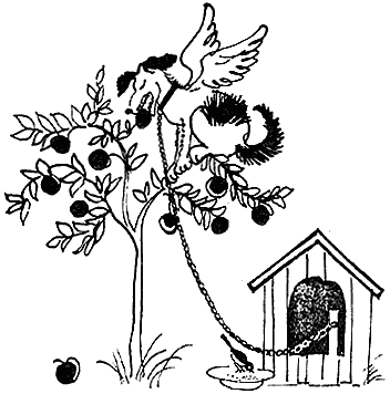 Надоело мне житьё в бумажном доме. Уж очень он на вид ненадёжный. Переселился я в каменный. Каменный дом мне построили муравьи. Тут все каменные дома строят муравьи. Вот это дом, так дом! Высотой с наш двухэтажный, стены толстые и крепкие — надёжный дом. Одно плохо — в доме ни окон, ни дверей. И потому темно, как в пещере. Но друзья помогли мне и в этом затруднительном положении. Внутреннее устройство дома они взяли на себя. Пробили дверь. На стол поставили гриб. Грибы такие растут в лесу. Грибы как грибы: ножка столбиком, шляпка зонтиком. Да только светятся они так ярко, что при их свете можно книжки читать. А в запас мне дали ещё и свечей. Свечи тоже не простые. Делают их так: ловят рыбку, продевают вдоль рыбки фитиль — и свеча готова. Вставляй хвостом в подсвечник и радуйся. А захотел спать, — выпусти из клетки певчую улитку: она все свечи погасит. Как дунет, так и погасит. Сплю я спокойно: ни мыши, ни мухи мне не мешают. Чтобы не было в доме мышей и крыс, подарили мне большого, красивого и ласкового удава. Все жители тут вместо кошек держат в домах удавов. Подарили на новоселье и цветы. Цветы эти не цветут и не пахнут, но зато здóрово ловят мух и комаров. Как поймают, так и съедят целиком, а крылышки да ножки выплёвывают. Подарили мне и собаку. Она охраняет дом. Кормлю я её фруктами: кости и мясо она не ест. Для охоты она не годится: уж очень медленно бегает. Но посмотрели бы вы, как ловко она летает! На спине у собаки есть два больших крыла. Ласковая собака: не кусается, не лает. Ночью порхает над крышей, а днём прицепится к дверной перекладине и висит весь день вниз головой. Не лает, не кусает, но и в дом не пускает — страшилище!