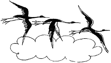 Нигде нет столько разных пастухов, сколько здесь! Сегодня я видел одного — журавлей пасёт! Я прямо-таки вцепился в него: это вам не какой-нибудь свинопас. У этого вместо кнута — самолёт! Летит он выше облаков, как серебряная стрела! А впереди птицы. Длинноногие и длинношеие, и длинноносые.