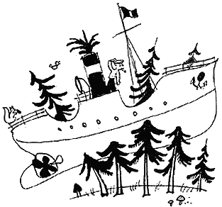 Ровно неделю ехал я верхом на шагающей горе. И ровно неделю волосы мои торчали дыбом. Через неделю горы сошлись. Сошлась гора с горой! Горы встретились! Я стал махать своими жёлтыми трусами. Люди в городке заметили сигнал бедствия и спустили меня вниз. Всё кончилось благополучно. Сейчас я отдыхаю после сытного обеда. Уж теперь-то я больше никогда не сунусь один в незнакомое место. Нужно как можно быстрее найти себе верного друга и надёжного спутника. Здесь это сделать не трудно, тут даже гора с горой сходится. А уж человек с человеком всегда сойдётся.