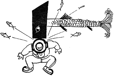 В Южно-Китайском море водится рыба дайюй. Осенью она косяками заходит на нерест в бухты и устья рек. Рыбка эта лучше всего клюёт на… хвост своего сородича! За хвост первой рыбки, попавшейся на крючок, цепляется вторая: за хвост второй — третья, и так до шести! Причём самая крупная рыбка — последняя. Рыб можно находить по голосам. Малайские рыбаки, выезжая на рыбную ловлю, подслушивают рыбьи разговоры. Для этого они опускают голову в воду и по звукам определяют, сколько вокруг какой рыбы и чем она занята. Рыбы джуфили, например, при кормёжке издают звуки, похожие на шум поджариваемого риса. Аквариумная рыбка гурами издаёт звуки, похожие на тихое постукивание деревянных ложек. Горбыли переговариваются «словами»: «тук-тук». Зеленушки пугают своих недругов звуками, похожими на барабанный бой. «Голоса» сельдей похожи на чириканье воробьёв, а килек — на гудение. Каждая рыбка издаёт свои звуки.В брюхе кита