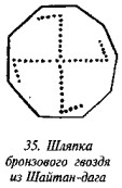 Национальному музею США в 1893 году удалось заполучить коллекцию предметов госпожи Шлиман, по завещанию её мужа, который еще при жизни распорядился передать её народу Соединённых Штатов в знак признательности и благодарности за выдачу ему постоянной въездной визы. Учёный никогда не забывал, что он является гражданином США, и таким образом отблагодарил свою вторую родину25. Собрание состоит из 178 предметов, все из раскопок Трои, и представляет собою вполне показательную выборку того, что было им найдено. Эта коллекция теперь составляет особый фонд в собрании Отделения доисторической этнографии. В ней наличествует ещё одно пряслице, откопанное на глубине 13,5 фута (около 4 метров) и относящееся к культуре Троя ГУ. На его лицевой поверхности изображено три свастики — это пряслице показано на рис. 71.