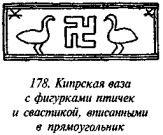 То, что лотос был популярным сюжетом в египетской мифологии и искусстве, трудно отрицать; факт, что он былсвязан с памятниками материальной культуры, отождествлявшимися с наиболее значительными священными и историческими персонажами Египта, а впоследствии и Греции, также общепризнан. Насколько прозорлив оказался профессор Гудъеар и до какой степени его теория заслуживает доверия, не нам судить. Естественно, и в той, и в другой стране эмблема цветка лотоса вошла в широкое употребление, а для настоящего исследования достаточно одной констатации того факта, что лотос каким-либо образом мог ассоциироваться со свастикой. Рис. 18–19 показывают фрагменты росписи кипрских вазы и амфоры, находящихся в коллекции Чеснолы (Cesnola) в Новом музее искусства Метрополитен в Нью-Йорке, на которых изображён лотос с закручивающимися лепестками, среди которых изображены свастики различного вида.