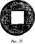 Знак свастики рисовался японцами и на фарфоре. Сэр Огюстус У. Фрэнк («Catalogue of Oriental Porcelain and Pottery», табл. 11, рис. 139) изображает одно изклейм — маленькую левозакрученную свастику, вписанную в окружность (рис. 30). Рис. 9 также показывает клеймо на японской бронзе (De Morgan. «Au Caucase», рис. 180).