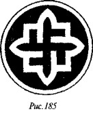 В-третьих, непременно повернуться спиною к так называемому «коловороту» (рис. 185). Эмблеме этой — полтора десятка лет от роду, она не имеет никаких аналогов в истории, будучи сочинена идеологами РНЕ, видящими в ней обыкновенную гитлеровскую свастику, чуть-чуть «облагороженную» ради отмазки.