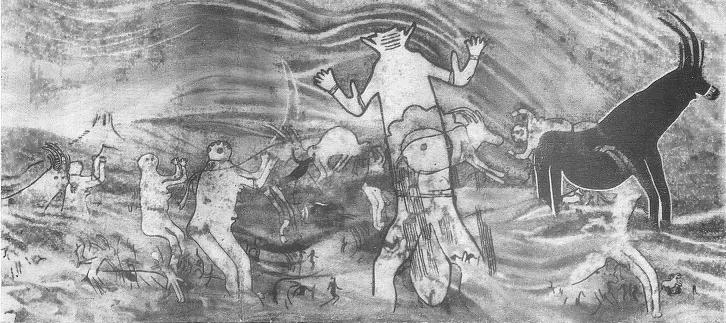 С Анд путешественники перелетели на одинокий и загадочный остров Пасхи, «остров устремленных вдаль взглядов», как местные переводят его название. С берегов острова в океанскую даль вечно смотрят исполинские статуи, неизвестно кем и для чего поставленные здесь. Чужепланетные их лица как бы говорят о том, что они не дело рук людей. Недаром в преданиях местных жителей говорится о небесных пришельцах… Такие же предания были и в Южной Америке, и в стране древних майя. Всюду говорилось, что когда-то Сыны Солнца (у ацтеков – Кетсалькоатль, у майя – Кукулькан, это одно понятие на разных языках – Пернатый, Летающий бог-змея, у инков – Кон-Тики, Сын Солнца, Солнечный) спускались с неба с громом без огня и учили людей знаниям и человеколюбию, потом улетели, пообещав вернуться… С острова Пасхи Матсумура с друзьями перелетели в пустыню Сахара, на плато Тассили, в скалы Сефара, напоминавшие руины гигантского города. Эти скалы, иссушенные ветрами, обожженные солнцем, хранили бесценные сокровища прошлого. Японец провел путников к хорошо известному ему месту. Он плеснул на скалу водой, и на камне проступило древнее наскальное изображение водолаза или космонавта в скафандре с герметическим шлемом, с широким воротником, в который легко прошла бы голова, в одежде, спадающей вертикальными складками. Во всем облике изображенного чувствовалась загадочная мощь. – Великий бог марсиан! – воскликнул Ан. – Знаком с ним еще со звездолета! Японец улыбнулся: – Я никогда не расстаюсь с этим рисунком.