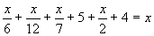 Примечание автора для особо интересующихся. Приведя обе части уравнения к единому знаменателю, имеем: 14∙x + 7∙x + 12∙x + 5 · 84 + 42∙x + 4 · 84 = 84∙x и 9x = 9 · 84; x = 84. (Примеч. авт.) (обратно)6