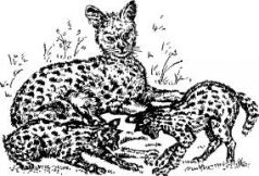 Или взять случай с сервалами. Эти стройные, длинноногие кошки с остроконечными ушами, коротким хвостом и оранжево-коричневой шкуркой в черную крапинку удивительно хороши собой, и мы чрезвычайно обрадовались, когда Тэмми окотилась. Она тоже проявила себя образцовой мамашей; с неделю малыш», что называется, жили припеваючи, хорошо сосали молоко, и Тэмми ходила с довольным видом. И вдруг, заглянув в ее клетку, мы увидели, что оба малыша мертвы. В чем дело?… Кожа не повреждена, значит, она их не кусала. Вскрытие все объяснило: они погибли от удушения. Очевидно, Тэмми ночью, переворачиваясь с боку на бок, придавила малышей и незаметно для себя задушила их. Такое случается с первым пометом у домашних кошек, прежде чем они усвоят все тонкости материнства.