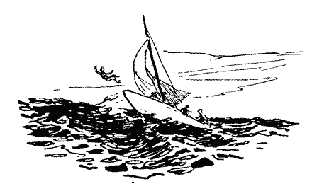 Отже, з матеріальними клопотами було покінчено. Але хлопців охопив якийсь осінній настрій, сум з приводу того, що все залишилося позаду, все завмерло, спустіло. Адже літо було в розпалі, на диво погоже, сонячне. Вони мандрували по озерах. Соснові ліси доходили до самої води, пашіли вистояним і міцним запахом смоли; вранці над водою пахло свіжою зеленню лук, такою чистою, що спогади про парфюмерію викликали нудоту. Коли не було вітру, хлопці зупинялися десь біля берега. Здісь в очереті ловив звичайних красноперок, а Куцик і Войтек неподалік вчили Андрійка плавати. Суламіф швендяла по околиці, полюючи на туристські запаси. Вечорами озера забарвлювались у фіолетовий колір. На мілинах, на підводних луках вода була густо поцяткована стрибками верховодок і, якщо не дивитися на небо, можна було подумати, що то йде дощ. Коли ставало темно, щось важке плескалось у воді біля очерету, і в Здіся стискалося серце: ось ходить велика риба, яку він ще не вмієспіймати. А в навислому над водою лісі невпинно покрикувала дрімлюга, і через деякий час її монотонний крик починав здаватися зловісним. Але не дуже. Якраз настільки, щоб присутність товариша не зв'язувала, а навпаки — підбадьорювала. Але найкрасивішими були світанки, яких городянин не бачить у місті і за звичкою просипає в лісі. А тимчасом — яке багатство фарб, запахів, форм! І насамперед багатство відчуттів! Андрійко полюбив ту пору дня, коли сонце щойно зійшло і його тепло ніжно пестить обличчя. Тоді зникають великі клуби імли і залишається її стільки, що озеро нагадує дзеркало, яке від теплого подиху втрачає свою прозорість. Саме тоді фарби прибережної зелені здаються найсоковитішими. Саме тоді гіркувато і різко пахне зелень вільшини. Саме тоді на низьких, ще затуманених луках дзвінко курликають журавлі. Ця пора здається Андрійкові такою чистою, такою піднесеною, що кожного дня він проводить її на палубі «Аталанти», нічого не роблячи, тільки милуючись чудовим видом. Якось під Момайнами, саме в цю пору, Андрійко побачив дивне явище. Все було так, як сказано вище: сонце, запах вільшини, спокійне озеро. І в цій тиші неспокійними були тільки верховодки, дрібні, сріблясто-зелені рибки, що гуляли на самій поверхні води. Здавалося, що їх охопив якийсь спортивний запал, і рибки влаштували змагання! Почали вискакувати з води, спритно вигинаючись, наче сталеві леза. Але ці стрибки в висоту здалися одній з них недостатнім. Верховодка розігналась і продемонструвала чудовий стрибок — вона дев'ять разів легенько і пружинисто підскочила на воді. Дев'ять кіл побігло по матовій поверхні озера. Андрійко не встиг надивуватися з її витівки, як почалося ще щось дивніше. У воді плавала звичайна соломинка. І ось раптом одна верховодка перестрибнула через неї. За нею друга. Третя скочила з іншого боку. Потім одночасно дві ще ледве не зштовхнулися посередині. І ще, і ще.. Наступного дня хлопці зустрілися з Франковяком, який завітав на кілька днів додому. Це був дуже високий блондин з сірими очима, білими вусами і круглим обличчям. Хлопці передали йому Суламіф. Вона поводилася так, начебто її втеча з дому лісничого не була ганебною. На щастя, пані Франковякова простила її. Хлопці почали вихвалятися: чого тільки вони не бачили на Мазурських озерах, чого тільки не навчилися! Звичайно, розповіли про спортивні інстинкти риб. На ж