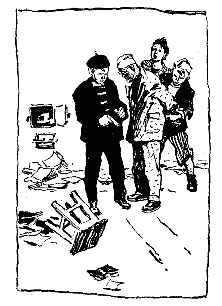 А коли за нею з'явилася голова — хлопці аж зітхнули від несподіванки. Це був не Сикус. Хлопці зовсім не знали цього чоловіка. Він був високий, світловолосий і широкоплечий, з квадратним підборіддям, довгуватим носом. Незнайомець кашляв, чхав, сіруваті очі на блідому обличчі сльозилися. Руки він слухняно підняв угору і тримав їх так, доки Рузга і Климчак перевіряли його кишені.