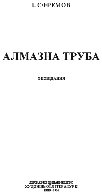 Переклад з російської Р. ЯКОВЕНКА Переклад здійснено за виданням: И. Ефремов, Алмазная труба, Издательство «Праада», Москва, 1946.
