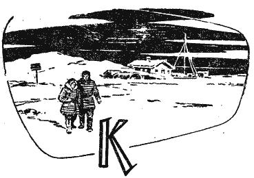 Усть-Камень — маленький рыбачий поселок. Несколько бревенчатых домиков на пологом берегу широкой, словно разлившейся в половодье реки. За домами — островерхие ненецкие чумы. Около чумов нарты в оленьих упряжках. В каждой по шесть оленей веером. Дальше тундра — зеленый обманчивый ковер. Если ступишь — хлюпает вода. Прежде по тундре ездили только на нартах. Зимой в упряжке четыре оленя — по снегу ехать легче, так объяснил мне мой попутчик, с которым мы прилетели сюда на сухопутном самолете. Когда мы приземлились, он пошел за новостями к начальнику аэропорта. Летающая лодка, возвращаясь с ледовой разведки, должна была зайти в Усть-Камень и захватить нас на остров Дикий. Издалека донесся шум мотора. Через тундру шел крытый вездеход. Он медленно взбирался на пологий холм, потом опустился в низину. Вездеход был похож на крохотный катерок, плывущий в мертвую зыбь по зеленому морю. Вот он снова появился на гребне. Машина приблизилась к оленьим упряжкам. Теперь было видно, как врезались колеса в сочный травянистый покров. Гусеницы оставляли за собой широкий мокрый след. Олени к урчащему чудищу относились спокойно: как видно, привыкли. Около крайнего домика вездеход остановился. Первым сошел юноша и куда-то скрылся. У машины, подняв капот и то и дело заглядывая в мотор, возился плотный мужчина в комбинезоне и мятой кожаной фуражке. Он что-то мурлыкал себе в усы. — Кузьма Андреевич! Поезжайте заправиться в аэропорт, потом вернетесь за мной сюда! — неожиданно услышал я знакомый женский голос. На крыльце рыбачьего домика стояла женщина. Даже в ватной куртке и штанах она была стройной. Я сразу узнал ее. Вспомнился фронт и группа военных топографов, повстречавшаяся мне близ Петсамо. Галина Николаевна тоже узнала меня: — Вы?! Откуда? Куда? — Что здесь делает топограф? — спрашивал я, пожимая протянутую руку и вглядываясь в красивое лицо с мягко очерченным подбородком и строгими серыми глазами, под которыми появились морщинки. — Теперь я геолог, — отвечала Галина Николаевна. — А где муж? — Убит… там же… вскоре после вашего отъезда, — сказала Галя и отвернулась. Механик с грохотом закрыл капот. Он смотрел на меня укоризненно. — Куда же вы? — уже спокойно спросила Галя, снова поворачиваясь ко мне. Я рассказал, что лечу на остров Дикий, чтобы сесть там на корабль, который доставит меня на «Георгия Седова». — Я буду на «Седове» до конца навигации, побываю на многих островах, даже самых северных. Галя оживилась. — Какая удачная встреча! Непременно передайте привет одному радисту — Ване. Он раньше работал со мной в тундре. Потом решил уйти на острова. На самые северные… Мы сидели с Галей на косых деревянных ступеньках и смотрели на разгоравшуюся оранжевую зарю. Я расспрашивал и слушал Галю, поглядывая на ее тонкий профиль, ватник, резиновые сапоги. Она рассказала мне о своем первом самостоятельном рейсе в качестве начальника геологоразведочной группы.