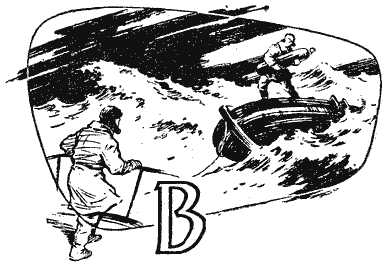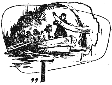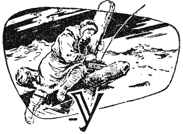 Занявшаяся заря отражалась в реке, и вода казалась оранжевой. На берегу несколько человек заводили сети. Мой попутчик Нетаев, молодой штурман дальнего плавания, направлявшийся, как и я, на «Георгия Седова», должен был сменить на корабле заболевшего помощника капитана. Нетаев ушел к начальнику аэропорта и долго не возвращался. Я решил посмотреть на рыбаков и спустился к ним. Несколько человек тянули сеть по берегу, а их товарищи в брезентовых робах, зайдя в реку по грудь, медленно шли в ледяной воде. Сеть вытянули на песок. Рыба шевелилась в ней, как живое серебро. Я никогда не предполагал, что на Дальнем Севере ловится столько разной рыбы. Тут и корюшка, и навага, и даже камбала, которая, как мне казалось, живет только в южных морях. Иногда попадалась небольшая безобразная рыбешка. Ее с отвращением выбрасывали обратно в воду. Это морской черт. Он похож на сказочного лешего, только маленький. Наконец вернулся Нетаев. Лицо его было спокойно, но голубые глаза выдавали волнение. — Несчастье на острове Угаданном! — явно сдерживаясь, ровным голосом проговорил он. Рыбаки подошли к нам. Несколько проворных рыбешек выскочили из сетей и, судорожно подпрыгивая, добрались до воды. — Пропали зимовщики — механик Гордеев и второй радист Панов, — сказал Нетаев. — Как пропали? — забеспокоился старый рыбак с серо-желтыми усами. — Пошли охотиться на нерпу, и со вчерашнего дня нет… — Беда-то какая! А искали? — послышались голоса. — Искали. Шли по лыжне. Лыжня обрывается у кромки льда. — Стало быть, остались на льдине, — сказал старик и снял шапку. Голова у него была изжелта-седой. — А погода там какая? — спросил молодой рыбак в солдатской шинели. — Шторм. — Значит, шторм и отломил льдину. — Только двое их? — Двое. Собака еще с ними. Продовольствия нет. — Горе-то какое!.. Арктика — она лютая да поворотная. Погибли ребята беспременно. Поди, молодые? — сокрушался старик. — Молодые. — Вы Баранова ждете? — спросил нас демобилизованный. — Баранова. — Вот если бы Баранов… — Да, если бы Баранов! — согласились окружающие. Мы шли к аэропорту. Я думал о пропавших зимовщиках. До острова Угаданного тысяча километров. Рыбаки отнеслись к несчастью на далеком острове так, словно оно произошло в крайнем доме поселка. В аэропорте мы узнали от радиста последнюю новость. На остров Угаданный только что вернулась мокрая собака… одна, без охотников. На шее у нее ножевая рана. Что же произошло на льдине, когда штормовой ветер тащил ее вдоль острова? Кто скажет?.. В небе показался самолет. Сначала он походил на черточку. Потом превратился в красавицу-птицу с застывшими в полете крыльями. Птица скользнула по воде, грудью разрезая оранжевую гладь. Появились два буруна с седыми гребнями. Два вращающихся с ревом винта казались блестящими дисками. Линия крыльев была много выше корпуса лодки, напоминавшего тело чайки. На концах крыльев появилось по поплавку, один из которых уже касался воды, вздымая пену, а другой еще шел над гладью реки. Летающая лодка развернулась и стала приближаться. С берега от бензиновых цистерн шли мостки. Работники аэропорта, в кирзовых сапогах и ватниках, уже тянули шланг. — Почему здесь заправляемся, а не на Диком? — спросил плечистый пилот, выходя из шлюпки на берег. Мы уже знали его. Это Матвей Баранов. Вместо ответа начальник аэропорта протянул пилоту радиограмм