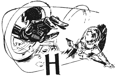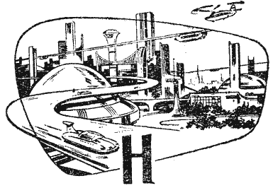 Евгений Громов, почерневший, словно пепел действительно оседал на его лице, выскочил из макета танкетки. Он никого не видел в лаборатории, хотя она была полна встревоженных людей. Наташа плакала, уронив голову на стол. Евгений бессмысленно твердил: — Я утонул… утонул… Вдруг Наташа вскочила из-за стола, схватила Евгения за плечи и стала трясти: — Только ты знаешь, где они! Только ты! — Но я утонул, утонул… — Перестань! Ты не смеешь! Ты знаешь там каждый камень. — Я знаю там каждый камень, — механически повторил Евгений. — Она прекрасно разобралась, кто из вас настоящий мужчина! — в исступлении крикнула Наташа, отталкивая Евгения. Евгений побледнел, посмотрел на часы. В этой лаборатории командовала все-таки Наташа… Широкий, приземистый автомобиль заносило на поворотах. Движение на шоссе прекратилось при звуках сирены. — Пожар? Скорая помощь? Авария?.. Гоночный автомобиль несся, прижавшись к асфальту. Евгений непроизвольно нагибался, сидя рядом с гонщиком. Перед ним были большие автомобильные часы. «Разум» отлетал в 10 часов 07 минут… На стрелках 9 часов 49 минут… До города туристов от Москвы полторы тысячи километров по воздуху. Ворота аэродрома широко открыты. Гоночный автомобиль несется уже по бетонным плитам. Реактивная амфибия стояла, освещенная прожекторами, напоминая стрелу с легким оперением. Сирена гонщика смолкла. Завизжали тормоза. Сверху из амфибии протянулись руки. Евгений буквально взлетел и исчез в проеме двери. Амфибия уже разбегалась… Пролетела над забором… Спрятала шасси… Часы показывали 10 часов 07 минут. Волосы Евгения слиплись. Девушка в белом халате протянула ему стакан. Он невидящим взглядом посмотрел на него, нащупал рукой и залпом осушил. Потом откинулся на спинку сиденья. Часы показывали 10 часов 23 минуты. Евгений знал, знал, как никто другой, что трасса «Разума», скорость его, движение в каждой точке рассчитаны с предельной точностью. Никогда еще не поднимался с Земли такой гигант. Вылет его не мог задержаться ни на секунду. Исступленно ревели за окном реактивные двигатели. Девушка-врач пичкала Евгения каплями и кофе. — Я знаю, что вы пережили, но от вас потребуется еще многое. Часы показывали 10 часов 36 минут. — Мы летим быстрее времени, — убеждала девушка-врач Евгения, словно он не знал этого, — быстрее, чем вращается земной шар…