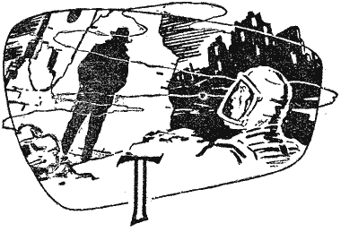 По заболоченной чаще двигались три фигуры. Керн и Вуд едва оправились от болезни. Затянувшаяся лихорадка иссушила их лица, отняла силы. Они шли, шатаясь, едва удерживаясь на ногах, балансируя, как канатоходцы. Особенно скверно приходилось Железному Джону. Не приспособленный к упражнениям в равновесии, он то и дело срывался со скользких корней и оказывался по колено в трясине. Керну пришлось проводить с ним специальные занятия, чтобы он усвоил «хождение по корням». Робот прекрасно все запоминал, мог слово в слово повторить, но… поминутно срывался в топь, с хлюпаньем и чмоканьем вытаскивая из грязи железные ноги. — Придется усовершенствовать машину, — мрачно заметил Керн. Но, когда нужно было пробиваться через лианы, закованный в доспехи робот был на высоте, сокрушая преграды топором, как рыцарь толпу врагов… Эти минуты Вуд использовал для собирания гербария. Аллан Керн насмешливо наблюдал за ним: — Рассчитываете на профессорское звание? — Боюсь, что маловато знаю, чтобы быть профессором!.. — Мелкое ваше море, Вуд. Мой брат Томас всегда говорил мне, что профессор получает в США меньше полицейского. — Посмотрите, шеф, на этот листок. Клянусь, я видел его отпечаток на камне. Разве я привезу его ради профессорского оклада? Нет, шеф, ради науки!.. — Наука не может быть целью. Наука — средство. Полюбуйтесь на Джона. Колония таких машин, создавая себе подобных, переделает эту планету, откопает здесь мне такие богатства… — Вы, кажется, ищете новую форму рабовладения? — О нет! Электронный мозг осведомлен и об американской декларации прав, и о социализме. Внезапно все вокруг потемнело, словно спустилась ночь. Послышалось щелканье, свист и завывание. — Ничего не понимаю, — сказал Керн, зажигая фонарь и смотря на часы. — Шеф, над нами туча пепла… — Вулкан? Этого только недоставало!.. По лесу пронесся грозный гул. Голоса сразу смолкли. Закачались папоротники. Керна и Вуда так тряхнуло, что они еле устояли на ногах, вцепившись друг в друга. Робот соскользнул с корня и завяз в трясине. Керн и Вуд помогли ему выбраться. Какое-то зверье шмыгало вокруг. Их горящие глаза словно искры проносились во тьме… — Если деревья начнут валиться, лучше выйти из чащи, — предложил Керн. Люди и машина бежали из лесу… навстречу спасающимся ящерицам… Лес кончился у крутого склона вулкана. Сверху, дымясь и сверкая, катилась огненная река. Почва колебалась под ногами, как море в мертвую зыбь. Керн и Вуд повернулись к лесу, но увидели, как валятся исполинские папоротники. — Сюда! — скомандовал Керн, указывая на каменистое возвышение. Лава медленно стекала, набухая тестообразной волной. Люди и робот стояли на камнях. Лава обтекала их с двух сторон. Магма добралась до крайних деревьев, и они вспыхнули свечками. Начался лесной пожар, раздуваемый сильным ветром. Огненный поток набухал, разливаясь все шире. Он сыпал искрами, яркие блики играли на нем, Черная туча висела над головой и сливалась с дымом лесного пожара. Все вокруг, освещенное лавой, зловеще переливалось красными отблесками. Пузыри вздувались на сверкающей поверхности магмы и лопались, разбрасывая фонтаны огненных брызг. Клубы дыма поднимались с горящего потока, как диковинный туман, окутывая ноги стоящих на каменном островке. — Хорошо, что с нами нет Мэри, — тихо прошептал Вуд. — Лучше помолимся, — сказал Керн, до