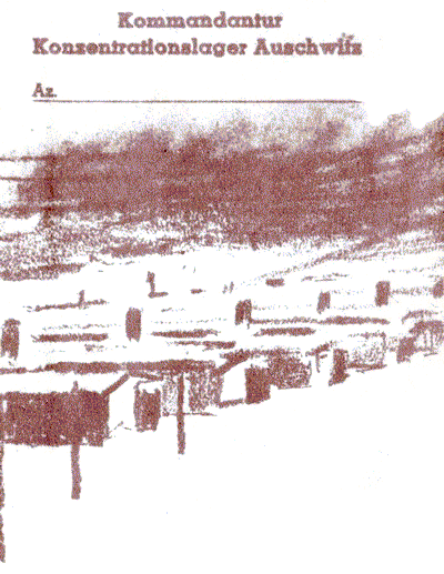 Ліворуч од воріт я побачив контрольно-пропускний пункт і караульне приміщення. Одразу за прохідною праворуч і ліворуч стояли дерев'яні бараки і цегляні будівлі, в яких містилися службові приміщення та різні господарчі служби — кухні, майстерні, лазні, дезинфекційні пункти, перукарні, склади тощо. В глибині території табору виднілися ряди мурованих двоповерхових будівель, схожих. на військові казарми. Це — блоки. Їх було кілька десятків. А ліворуч, поодаль від усіх будівель і служб, поблизу дротяної огорожі, стояла вгрузла в землю важка споруда — крематорій. Зовні вона скидалася на пекарню, побудовану в суто німецькому стилі. Це була широка приземкувата будівля з бурої цегли з гостроверхим дахом під червоною черепицею. Над нею, як меч, устромлений в небо, стирчала двадцятиметрова квадратна труба, з якої валив густий чорний дим. Туманом осідаючи над табором, він розносив нудотний сморід, від якого можна було збожеволіти. У повітрі літала пухнаста жирна сажа. Опускаючись на землю, вона вкривала всі предмети, траву й квіти.