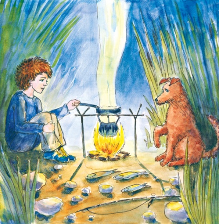 Найда, звісно, вже давно проковтнув би рибку й сирою. Але, нетерпляче витанцьовуючи, дожидався, поки Миколка її посмажить. Щоб — «за компанію».