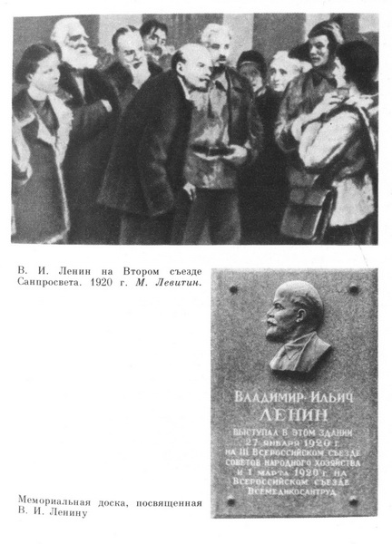 Владимир Ильич Ленин выступал в этом здании 27 января 1920 г. на III Всероссийском съезде Советов народного хозяйства и 1 марта 1920 г. на Всероссийском съезде Всемедиксантруд. Памятная доска у входа в ЦДРИ23 января 1920 года открылся 3-й Всероссийский съезд советов народного хозяйства. ...Январь двадцатого. Ежедневные сводки с фронтов гражданской войны не могут не радовать: освобождены почти вся Украина и Северный Кавказ, под Петроградом разбиты войска генерала Юденича. «Начались бои на новом фронте,— пишут «Известия»,— фронте труда. Поступила первая оперативная сводка». В этой сводке — число отремонтированных паровозов и вагонов, версты восстановленных путей. Москве трудно. Численность населения в городе по сравнению с 1917 годом снизилась наполовину. Стоят заводы, хлеб выдается с частыми перебоями, нет дров. Москве нужен ежедневный минимум — 250 вагонов топлива, но фактический завоз значительно меньше этой «холодной нормы». 25 января на первые полосы центральных газет вынесены самые важные сообщения — бои в Крыму, телеграмма о пленении адмирала Колчака (телеграмма пришла из Сибири с большим опозданием — еще 21 января ответом на первый вопрос: «Да, я адмирал Колчак» — «верховный правитель России» начал давать показания Чрезвычайной следственной комиссии в Иркутске) и среди всех этих сообщений информация об открытии 3-го Всероссийского съезда советов народного хозяйства. Он открылся в Колонном зале Дома союзов, затем перешел в здание клуба Союза коммунальников па Софийку. 27 января на заседании съезда выступил Владимир Ильич Ленин. Этот январский день, как и все предшествующие, был заполнен у Владимира Ильича до предела. Заседание Политбюро, на котором рассматривался вопрос о коммунистической работе среди рабочих и крестьян мусульманского Востока. Вечером — заседание Совнаркома, где должен обсуждаться проект декрета о кредитной кооперации. На рабочем столе Ленина — требующие неотложного распоряжения документы Совета Обороны и протоколы Реввоенсовета. И все-таки он должен найти время и приехать на Софийку. На съезде идет горячий спор о коллегиальности и единоначалии. Это не схоластика, это насущная задача дня. Дискуссия, судя по газетам, разгорается, . надо ехать... Краткий газетный отчет на другой день сообщал: «Товарищ Ленин говорит, что он лишь бегло коснется тех вопросов, с которыми ему приходилось в последнее время больше сталкиваться. Один из таких вопросов — организация управления, вопрос о коллегиальности и единоначалии ». Владимир Ильич в своем выступлении как бы оттачивал мысль, которая станет основополагающей в решениях IX съезда партии,— он должен состояться в марте. «Основной задачей при организации управления,— будет сказано в резолюции съезда,— является создание компетентного, твердого, энергичного руководства, идет ли речь об отдельном промышленном предприятии или целой отрасли промышленности». Съезд четко определил обязанности командиров производства: директора-администратора «из рабочих-профессионалистов, обнаруживших твердую волю, выдержку и, в частности, способность привлекать к работе специалистов...», инженера, членов рабочего совета при директоре. В резолюции подчеркивается: «...необходимым условием улучшения хозяйственной организации и роста производства является фактическое проведение в жизн