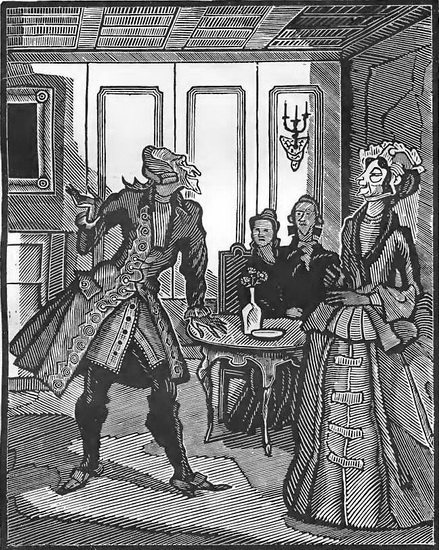 Столичный остряк. Самый последний тупица может показаться занимательным в течение одного-двух вечеровНа другой день мы ждали к себе мистера Торнхилла, и можно вообразить, какие были произведены опустошения в кладовой: не хотелось ударить в грязь лицом! Жена и дочки, разумеется, пожелали предстать перед гостем в самом радужном своем оперении. Мистер Торнхилл прибыл в сопровождении двух приятелей, псаря и собственного капеллана. Своим многочисленным слугам, чтобы не обременять нас, он приказал отправиться в ближайший трактир. Но жена, обуреваемая гордыней, пожелала распространить свое гостеприимство также и на слуг — вследствие чего, замечу кстати, в течение последующих трех недель стол наш был весьма и весьма скромен. Правда, намек, брошенный накануне мистером Берчеллом, будто бы мистер Торнхилл сватается к мисс Уилмот, бывшей невесте сына моего, Джорджа, несколько умерил наше радушие; впрочем, случай помог ослабить натянутость, которую все невольно испытывали: ибо, когда, не помню кто, невзначай упомянул ее имя, мистер Торнхилл тотчас воскликнул, что просто понять не может, как такую дурнушку называют красавицей, — и даже при этом побожился. — Да я бы скорее остановил свой выбор на одном из страшилищ, что украшают церковь святого Дунстана{149}, — прибавил он. — Разрази меня молния, если это не так! Он рассмеялся, а вслед за ним засмеялись и мы: шутки богача всегда остроумны. Оливия же притом еще не удержалась и шепотом, достаточно, однако, громким, заметила, что мистер Торнхилл обладает неиссякаемым запасом остроумия. После обеда я предложил свой обычный тост — за церковь. Капеллан поблагодарил меня, сказав, что церковь является его единственной возлюбленной. — А что, Франк, признайся, — начал помещик со своей обычной лукавой усмешкой, — что, если бы церковь, твою возлюбленную, как ты ее величаешь, разодетую в батист, поставить по одну сторону, а мисс Софию, без всякого батиста, по другую, — кого бы ты выбрал? — Обеих, конечно! — воскликнул капеллан. — Молодчина, Франк! — вскричал помещик. — И пусть я захлебнусь этим вином, если хорошенькая девушка не стоит всех попов на свете! Ведь все эти церковные десятины{150} и прочее — дьявольский обман, и ничего больше! Я берусь доказать, что это так. — Сделайте милость, докажите! — воскликнул сын мой Мозес. — Я же со своей стороны постараюсь опровергнуть вас. — Отлично, сударь! — вскричал помещик, сразу смекнув, с кем имеет дело, и подмигнул, как бы приглашая всех принять участие в предстоящей забаве. — Если вы хотите начать диспут, я принимаю ваш вызов. Но прежде всего нам нужно установить, как вы намерены вести его — аналогическим или диалогическим методом? — Я желал бы вести его на разумных началах, — отвечал Мозес, в восторге от того, что ему представилась возможность выступить в словесном поединке. — Вот и отлично! — воскликнул помещик. — Итак, я полагаю, вы не станете отрицать, что все сущее существует? Если вы не примете этого постулата, мне придется уклониться от дальнейшего обсуждения. — Что ж, — ответствовал Мозес, — это я, пожалуй, могу допустить. Будь по-вашему. — Я полагаю также, — продолжал его оппонент, — что вы согласитесь с тем, что часть меньше целого? — Допускаю! — вскричал Мозес. — Ибо это не только справедливо, но и разумно. — Полагаю, — воскликнул помещик, — что вы не станете отри