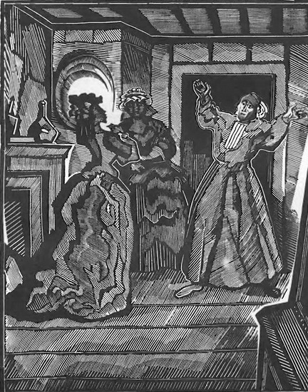 Мы все еще не желаем сдаватьсяНаступил канун Михайлова дня, и сосед Флембро позвал нас к себе играть в разные игры и угощаться калеными орехами. Только что пережитые незадачи несколько посбили с нас спесь, а то, как знать, быть может, мы и отклонили бы это приглашение. Так или иначе, мы соблаговолили пойти в гости и повеселиться. Гусь и клецки нашего доброго соседа были великолепны, а пунш, по признанию такого придирчивого ценителя, как моя жена, просто превосходен. Правда, разговор нашего хозяина оказался хуже угощения, ибо истории, которыми он нас потчевал, были длинны и скучны, а непременным героем их всякий раз оказывался он сам; к тому же мы слышали их раз десять, по крайней мере, и каждый раз смеялись. Впрочем, у нас достало добродушия посмеяться и в одиннадцатый раз. В числе приглашенных был также мистер Берчелл. Большой охотник до всяческих невинных забав, он затеял игру в жмурки; жену мою уговорили принять участие в игре, и я с удовольствием убедился, что годы еще не совсем состарили ее. Мы с соседом между тем наблюдали за играющими, смеясь каждой их увертке и похваляясь друг перед другом былой своей ловкостью. За жмурками следовали «горячие устрицы», «вопросы и ответы», и наконец все уселись играть в игру, известную под названием «Где туфелька?». Тем, кто незнаком с этой допотопной забавой, я должен все же объяснить, в чем она заключается. Играющие садятся прямо на пол в кружок, в то время как один стоит посредине и стремится перехватить туфельку, которую сидящие передают друг другу; причем всякий норовит подсунуть туфельку под себя, и она снует и беспрестанно мелькает наподобие ткацкого челнока. Та, что водит, естественно, не может быть обращена лицом ко всем сразу и вот главная прелесть игры заключается в том, чтобы шлепнуть ее подошвой по наименее защищенной части тела. Наступил черед Оливии водить; колотушки сыпались на нее со всех сторон, растрепанная, увлеченная игрой до самозабвения, голосом, который заглушил бы уличного певца, взывала она к игрокам, чтобы они не жульничали, когда — о, ужас! — в комнате появились две наши знатные дамы из столицы — леди Бларни и мисс Каролина Вильгельмина Амелия Скеггс! Перо бессильно передать это новое наше унижение, и я даже пытаться не стану описывать его. Боже праведный! Такие блистательные дамы — а мы в таких неизящных позах! А все это мистер Флембро с его грубой затеей! Мы так и застыли от изумления, словно в камень обратились! Встревоженные тем, что не видели нас в церкви накануне, дамы задумали проведать нас и, не застав дома, явились сюда. Оливия взяла объяснения на себя и, не вдаваясь в излишние подробности, сказала: — Наши лошади сбросили нас. При этом известии дамы не на шутку взволновались, но, услышав, что никто из нашей семьи не получил никаких повреждений, пришли в неописуемый восторг; однако, узнав, что мы чуть не умерли со страха, чрезвычайно опечалились; когда же их заверили, что ночь мы спали превосходно, они снова были наверху блаженства. Снисхождение их к моим дочерям было безмерно. Уже в первое свое посещение изъявляли они чувства самые теплые, теперь это была пламенная дружба, и они ничего так не желали, как того, чтобы она превратилась в вечную. Леди Бларни испытывала особое влечение к Оливии, а мисс Каролине Вильгельмине Амелии Скеггс (не могу отказать себе в удовольствии пр