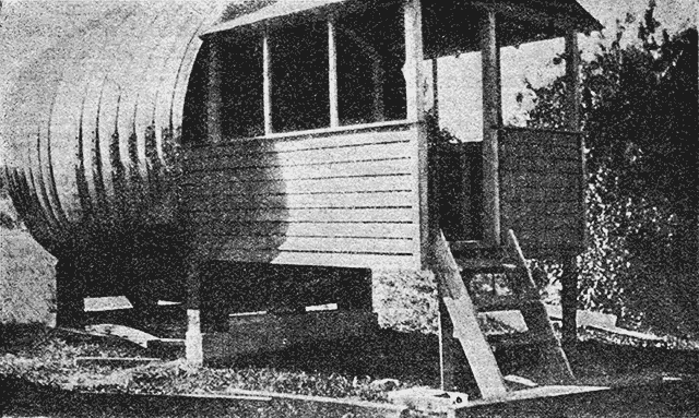 Жилищная теснота и квартирный кризис заставляют ломать головы над их разрешением не только у нас, в СССР, но и в крупных европейских и американских центрах. Наша фотография показывает, как одному нью-йоркскому архитектору удалось разрешить это затруднение. Не имея возможности приобрести себе участок земли близ Нью-Йорка, в виду ее дороговизны, он арендовал себе клочок пустыря, на крутом берегу Гудзона. Установив два высоких железных решетчатых устоя, он: перекрыл их железо-бетонной площадкой и построил на ней красивый трехэтажный дом. Архитектор Воолкот, живя в этом надземном доме, несомненно будет в достаточном количестве пользоваться солнечным светом и чистым воздухом.