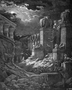 1 После сего я увидел иного Ангела, сходящего с неба и имеющего власть великую; земля осветилась от славы его. 2 И воскликнул он сильно, громким голосом говоря: пал, пал Вавилон, великая блудница, сделался жилищем бесов и пристанищем всякому нечистому духу, пристанищем всякой нечистой и отвратительной птице; ибо яростным вином блудодеяния своего она напоила все народы, 3 и цари земные любодействовали с нею, и купцы земные разбогатели от великой роскоши ее. 4 И услышал я иной голос с неба, говорящий: выйди от нее, народ Мой, чтобы не участвовать вам в грехах ее и не подвергнуться язвам ее; 5 ибо грехи ее дошли до неба, и Бог воспомянул неправды ее. 6 Воздайте ей так, как и она воздала вам, и вдвое воздайте ей по делам ее; в чаше, в которой она приготовляла вам вино, приготовьте ей вдвое. 7 Сколько славилась она и роскошествовала, столько воздайте ей мучений и горестей. Ибо она говорит в сердце своем: «сижу царицею, я не вдова и не увижу горести!» 8 За то в один день придут на нее казни, смерть и плач и голод, и будет сожжена огнем, потому что силен Господь Бог, судящий ее. 9 И восплачут и возрыдают о ней цари земные, блудодействовавшие и роскошествовавшие с нею, когда увидят дым от пожара ее, 10 стоя издали от страха мучений ее и говоря: горе, горе тебе, великий город Вавилон, город крепкий! ибо в один час пришел суд твой. 11 И купцы земные восплачут и возрыдают о ней, потому что товаров их никто уже не покупает, 12 товаров золотых и серебряных, и камней драгоценных и жемчуга, и виссона и порфиры, и шелка и багряницы, и всякого благовонного дерева, и всяких изделий из слоновой кости, и всяких изделий из дорогих дерев, из меди и железа и мрамора, 13 корицы и фимиама, и мира и ладана, и вина и елея, и муки и пшеницы, и скота и овец, и коней и колесниц, и тел и душ человеческих. 14 И плодов, угодных для души твоей, не стало у тебя, и все тучное и блистательное удалилось от тебя; ты уже не найдешь его. 15 Торговавшие всем сим, обогатившиеся от нее, станут вдали от страха мучений ее, плача и рыдая 16 и говоря: горе, горе тебе, великий город, одетый в виссон и порфиру и багряницу, украшенный золотом и камнями драгоценными и жемчугом, 17 ибо в один час погибло такое богатство! И все кормчие, и все плывущие на кораблях, и все корабельщики, и все торгующие на море стали вдали 18 и, видя дым от пожара ее, возопили, говоря: какой город подобен городу великому! 19 И посыпали пеплом головы свои, и вопили, плача и рыдая: горе, горе тебе, город великий, драгоценностями которого обогатились все, имеющие корабли на море, ибо опустел в один час! 20 Веселись о сем, небо и святые Апостолы и пророки; ибо совершил Бог суд ваш над ним. 21 И один сильный Ангел взял камень, подобный большому жернову, и поверг в море, говоря: с таким стремлением повержен будет Вавилон, великий город, и уже не будет его. 22 И голоса играющих на гуслях, и поющих, и играющих на свирелях, и трубящих трубами в тебе уже не слышно будет; не будет уже в тебе никакого художника, никакого художества, и шума от жерновов не слышно уже будет в тебе; 23 и свет светильника уже не появится в тебе; и голоса жениха и невесты не будет уже слышно в тебе: ибо купцы твои были вельможи земли, и волшебством твоим введены в заблуждение все народы. 24 И в нем найдена кровь пророков и святых и всех убитых на земле.