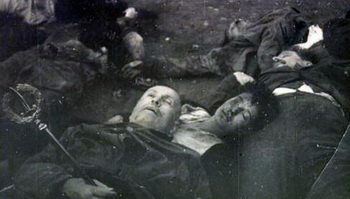Сразу возникло ощущение, что мои персонажи действительно существовали. Хотя на самом деле существовали люди, про которых я ничего не знаю, и осталась от них только пожелтевшая карточка. Интересно, кто сдает в магазин фотографии из семейных альбомов? Наверное, умирает какая-нибудь старушка, после нее избавляются от разного хлама, всяких никому не нужных и не интересных кипсейков. И сгребает кто-нибудь безразличный лица из чужого прошлого, и сдает букинисту по 100 рублей штука. Но ладно, я хотел не о грустном. Иногда попадаютсяфотографии, которые я долго рассматриваю, потому что не могу понять — а что это на них запечатлено? Вот пару дней назад купил фронтовой снимок, датированный июнем 1917 года. Думаю: чего это половина народу в исподнем да подштанниках? Нипочем бы не сообразил, если б на обратной стороне не было надписи. Ну-ка, угадайте, кто все эти люди? Уверен, что среди членов Благородного Собрания найдутся умы поострее моего.