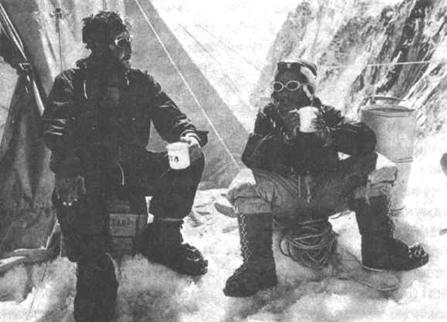 Хиллари и Тенцинг в лагере IVна спуске с вершины в 1953 году