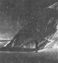 В тумане, в клочьях бегущих облаков не видно уходящих вниз склонов. Кажется даже, что склон направо от меня все еще ведет вверх. Но этот штатив, это сооружение, поднимающееся из снега до высоты колена, здесь. Я на вершине. В полубессознательном состоянии, чисто автоматически выполняя внутреннее задание, делаю несколько снимков. Внизу показывается кусок голубого неба. Снежные карнизы громоздятся над южным склоном, это они приподнимают склон выше самой вершины. Опускаюсь на снег, от усталости тяжелый, кал камень. Отдохнуть хоть самую малость, забыть обо всем. Но здесь не отдыхают. Я выработан и опустошен до предела. Но вот снова в моей опустошенности начинает появляться какая-то энергия. Я снова заряжаюсь. В течение многих часов я только отдавал энергию. Теперь возвращаюсь к жизни, ощущаю прилив сил.