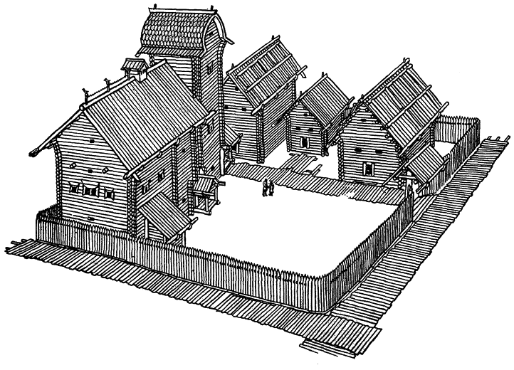 Вполне допустимо, что сколоты представляли собою не только союз нескольких племен со своими «царями» во главе каждого из них, но и классовое общество. В пользу столь высокого уровня говорит не только существование богатой знати, но и наличие экспортного земледелия. Геродот сообщает, что «скифы-пахари» (праславяне Правобережья Днепра) сеют хлеб на продажу и что один из старейших греческих городов Северного Причерноморья — Ольвия носит второе имя — «Торжище Борисфенитов», т. е. праславян-днепрян. Экспортное земледелие всегда содействует не только быстрому обогащению племенной верхушки, но и усилению эксплуатации, возникновению острых, антагонистических отношений внутри общества. Карта мест находок античных предметов роскоши, импортируемых из Ольвии и других греческих центров и являвшихся эквивалентом сколотского хлеба, показывает, что главными потребителями импортных вин и золотых украшений была славянская знать Правобережья Среднего Днепра (зона прежней чернолесской культуры), где, очевидно, и следует размещать три царства геродотовских сколотов. Важным источником для воссоздания социальной структуры общества являются тип поселения и характер жилищ. Эволюция этих элементов культуры такова: поселки тшинецкого времени — деревни с очень небольшими избами и амбарами. В белогрудовско-лужицкое время (XI–X вв. до н.э.), очевидно, в связи с развитием подсечного земледелия, требующего коллективных усилий, появляются (в обеих половинах праславянского мира) большие дома площадью до 200 кв. м (16 x 12; 18 x 11 м), рассчитанные на большую семью порядка 20–30 домочадцев, «челядинцев». Возможно, что такое жилище с общим очагом посередине именовалось «огнищем». В последующей хронологически чернолесской культуре и в раннее скифское время огнища еще существуют, но размеры их несколько сокращаются. Одновременно появляются небольшие округлые городища с круговой застройкой жилищами вдоль стен («хоромы» от «хоро» — круг?). В расцвет «сколотской» эпохи (V–IV вв. до н.э.) наблюдается сочетание очень больших укреплений с малыми избами (4,5 x 3; 4,5 x 5,5 м) внутри крепости. Размеры городищ таковы (500–700 га), что там, кроме укрытия для беженцев и загонов для скота, могло разместиться более 1000 изб отдельных семей-парцелл. Размещение жителей внутри крепости не только содействовало их защите от внешнего врага, но и усиливало возможность организованно эксплуатировать их труд, используя крепостные стены как препятствие к свободному уходу поселенцев из поля зрения знати. Подобные крепости (княжеские «дворы») для временно несвободных закупов мы знаем для середины XII в. н.э. (городище Изяславль на Волыни).