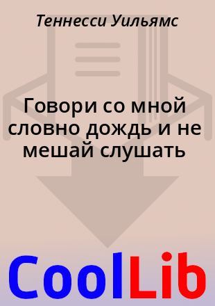 Теннесси Уильямс Говори со мной словно дождь и не мешай слушать Перевод Василий Павлович Аксенов Сцена: меблированная комната в западной части 8-й авеню в сердце Манхэттена. На раскладушке лежит Мужчина в мятом белье, с трудом просыпающийся и издающий звуки, характерные для того, кто рухнул «в койку», будучи очень пьяным. Женщина сидит у единственного окна, ее силуэт слабо очерчен на фоне неба, чреватого сильным дождем. В руках Женщины стакан с водой, откуда она изредка отпивает, дергаясь, будто птичка. У обоих измочаленные молодые лица, похожие на лица детей из голодающей страны. В их речи чувствуется некоторая вежливость, что-то вроде некоторой формальности, как бывает между двумя одинокими детьми, которые хотят стать друзьями, и все-таки возникает ощущение, что они уже долго живут в такой вот интимной ситуации и нынешняя сцена между ними — это ...