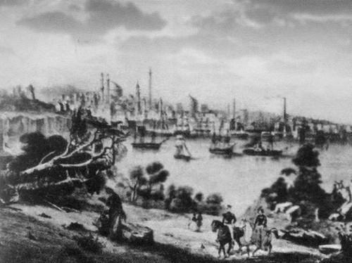 Военная академия США в Вест-Пойнте в 1830 году. С картины художника Дж. Кэтлина