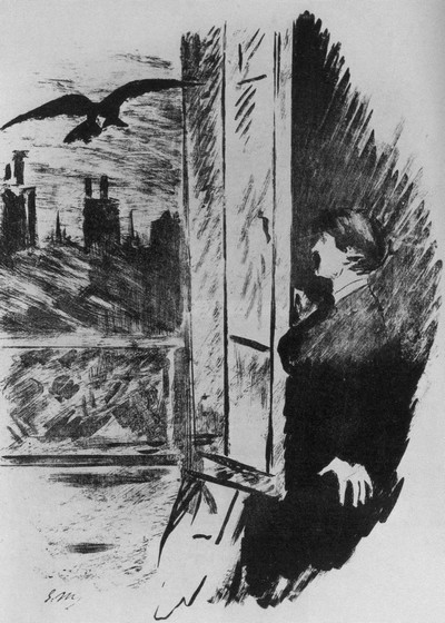 Иллюстрация Эдуара Мане к стихотворению Эдгара По «Ворон»