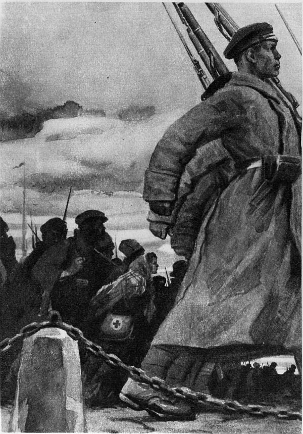 Большой город погружен в ночную тьму без единого огонька. Едва различимы темные глыбы домов, черны, каквходы в пещеры, глазницы окон, внизу серое полотно реки, и над всем этим — покров беззвездной, мглистой ночи. Сама по себе такая картина может потрясти душу, наполнить ее смутным страхом, недоверием, предчувствием чего-то неожиданного. Но если этот ночной город-гигант при этом кричит всеми своими голосами — самое мужественное сердце забьется сильней и тревожней. Черные балконы набережных нависли над тронутой оттепелью Невой. Тяжелые дуги мостов уходят вверх во тьму. Дома молчат, как будто это их не касается, но улицы наполняются народом. У темных домов — темные силуэты людей. Говорят больше шепотом. Спрашивают, не получая ответа. И только сам город кричит. Кричат гудки фабрик, заводов, электростанций, застывших во льду на Неве и в порту судов, паровозов. Кричат разными голосами, но об одном и том же. В движении людей во тьме зимней ночи было что-то деловое, напряженное. Шли большими группами. У некоторых за плечами дулами книзу висели винтовки и карабины, но большинство было безоружно. Двое стремительно вышли из подворотни дома и сейчас же слились с людским потоком, направлявшимся к набережной Невы. Долго шли молча.
