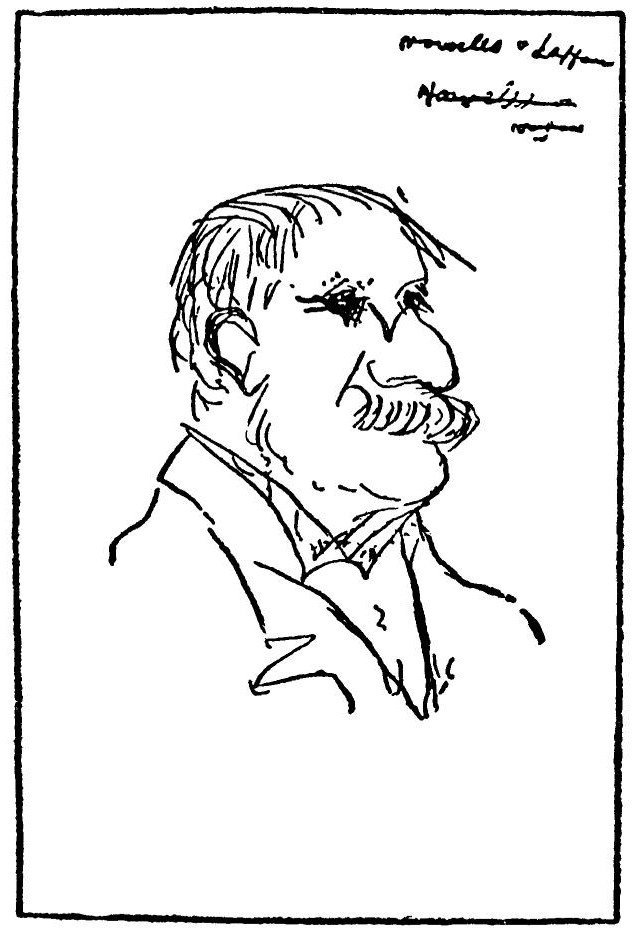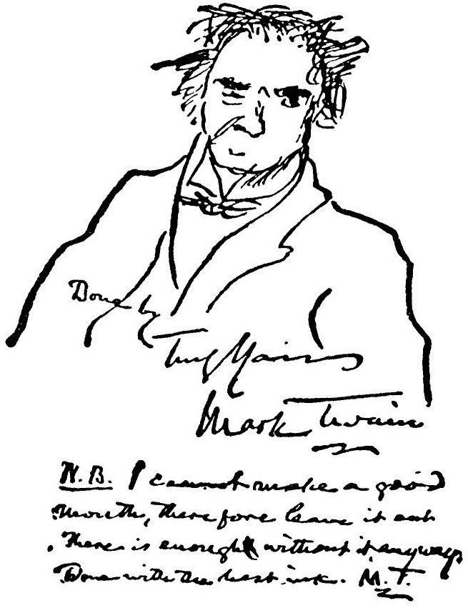 Рисовать рты я не умею, поэтому рта на портрете нет. Тут и без него добра хватит. Выполнено чернилами высшего качества. — М. Т.