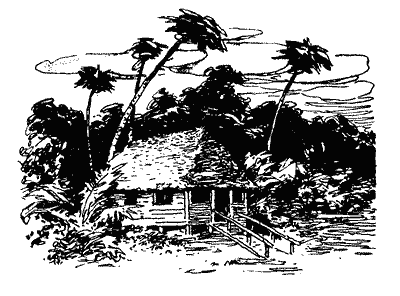 Наступні два дні ми доводили до ладу човна, конопатили його й смолили, щоб він не протікав. Ми також замінили старі кочети новими. У неділю вранці ми навантажили в човна все, що хотіли взяти з собою на острів, і були готові розпочати нове життя. Проводжав нас Поді Гама-рала. Він прийшов до човна і на прощання подарував нам уже велике цуценя і рушницю. — Човен у вас перевантажений, — застеріг він. — Дивіться, пливіть обережно. Ми від щирого серця подякували йому й вирушили в путь. Дотримуючись доброї поради Поді Гама-рали, ми пливли не поспішаючи. Густі мангрові зарості тяглися вздовж усього берега острова, але ми знайшли прогалину і причалили. Вивантаживши з човна речі, ми витягли його на пісок, принесли три досить товстих колоди, поклали їх у воду біля самого берега і наклали на них каменюк. Вийшло щось схоже на причал. Після цього ми протоптали до нашої печери стежку, попереносили все, що привезли з собою, простелили мати, поклали подушки і лягли перепочити. Трохи відпочивши, встали й приготували собі сніданок — їли кокосові горіхи й лишились голодні. Зате обід у нас був розкішний. Джінна зварив рису й каррі з сушеної риби, а я приготував з кокосового горіха смачну самболу. Наївшись донесхочу, ми знову полягали на свої мати й одразу заснули наче вбиті.