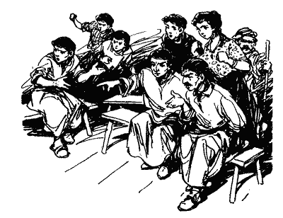 Ввечері в шкільному залі було повно народу. Прийшло навіть кілька жінок. Сцену освітлювала гасова лампа. Час минав, але вистава чомусь не розпочиналась. Глядачі хвилювались.