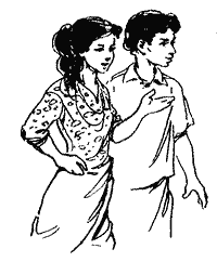 Не минуло й двох тижнів, як я вже потоваришував майже з усіма хлопцями нашого класу. Вороже ставились до мене лише великий хлопець, який першого ж дня обізвав мене черепахою, та його сусід. Як і досі, мені дуже подобались різні ігри й витівки, але до науки я в новій школі не мав ніякої охоти. На уроках весь час доводилось зубрити всякі важкі слова й завчати непотрібні на мій погляд істини. З директоровими дітьми я щиро заприязнився. Дівчинку звали Сомалата, а хлопчика — Гунадаса, і вони так само, як і я, не любили сидіти вдома. Після уроків ми бігли в садок, грали у яку-небудь гру, стрибали, галасували. Панові Дхармасінге страшенно це не подобалось. Він вважав, що ми марнуємо дорогоцінний час, і по кілька разів наказував нам: «Годі, годі! Ідіть вчити уроки». Найчастіше ми слухались його лише після того, як він загрозливо зводив руку. Через кілька місяців я почав помічати, що дружина пана Дхармасінге дуже незадоволена нашою дружбою. Одного разу я навіть почув, як вона незадоволено пробурмотіла: «У цього хлопця на думці самі пустощі». Побачивши, що ми бігаємо і галасуємо в садку, вона сходила з веранди й казала: «Сомалата, перестань бігати, для тебе це шкідливо». Якщо ж вона бачила нас у тій частині садка, де був пісок, то говорила: «Дивіться, яку ви зняли пилюку. У вас неодмінно буде короста». Якщо вона помічала, що ми йдемо в кущі за садком, то кричала: «Сомалата, не смій туди ходити, там тебе кропива вжалить». Якщо ж вона бачила, що ми прямуємо до хвіртки, що виходила на путівець, то кричала: «Не можна вам туди ходити, там вас задавить машина!», хоч машини проїздили цією дорогою не частіше одного разу на тиждень. Обідали ми всі разом. «Не плямкай!» — суворо казав мені директор. «За столом розмовляти не можна», — зупиняв він Гунадасу.