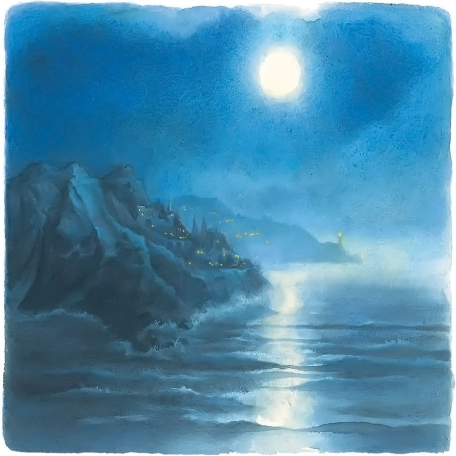Сколько было рассказов, когда она вернулась назад! Но больше всего, по её словам, ей понравилось лежать в тихую погоду на песчаной отмели и нежиться при свете месяца, любуясь раскинувшимся по берегу городом: там, точно сотни звёзд, горели огни, слышались музыка, шум и грохот экипажей, виднелись башни со шпилями, звонили колокола. Да, именно потому, что ей нельзя было попасть туда, её больше всего и манило это зрелище.