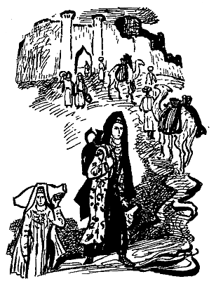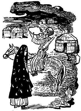 Каушуту они были незнакомы. Но блестящее серебряное украшение на шее лошади и богатая попона говорили о том, что это были не бедные люди. Старуха направлялась прямо к кибитке Каушута. Поняв это, он крикнул жене: