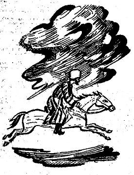 Каушут сразу сообразил: что-то неладно. Не иначе, кого-то похитили из аула. Понимая, что одному, да еще без лошади, никак не справиться, он вскочил на ноги и, размахивая серпом, закричал: