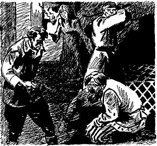 Вошли трое. Давешний бородач, пройдя комнату, поставил на стол горящую лампу. За ним живенько вбежал в комнату, оглядел Клешкова и засеменил, чему-то посмеиваясь, щуплый жидкобородый старенький мужичонка в чиновничьей старой шинели и треухе. Третий, невидный в скудном свете лампы, вошел и встал в углу, до самых глаз укрытый в бурку, в насунутой папахе. Только рука его с длинными пальцами и торчащим ногтем на мизинце — ею он придерживал полы бурки — видна была в свете лампы.