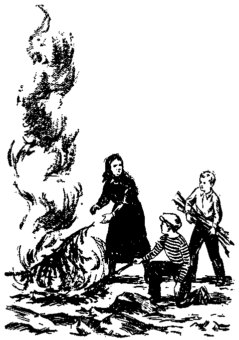 Никто не говорил ни слова. Отсветы пламени двигались по лицам ребят. Шумел и барабанил дождь по крыше.