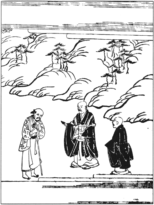 Дожив до преклонных лет, поселился я в самой глуши Курусуно. Собирал нижние ветви кустарника, чтоб затыкать протекающую крышу от дождя, а листьями бамбука затыкал щели, чтоб не продувал ветер, ел чашку каши, запивая супом из дикого шпината, так и дремал себе, а как-то осенью, когда вечера длиной в тысячу лет, хотел уснуть — да всё не мог, и надумал пойти в храм, что недалеко от моей хижины. Пусть не ворковали голуби: «Тосиёри кой» — «Приходите, старики», — но взял я палку с набалдашником в виде голубя[3], поковылял туда и устроился возле длинной печи у трапезной храма. Прихожане и послушники, подавая мне чай, упрашивали: — Расскажите какую-нибудь старую сказку! Думал я рассказать сказки, что слышал от своих деда и бабки, и ответил: — Сейчас расскажу! — «Он ходил в горы стирать, а она — на реку за хворостом…»[4] — начал я. — Что за старьё! Давай-ка расскажи-ка что-то забавное о почившем учителе Иккю, что жил в этом храме! — И наперебой стали о нём рассказывать, так что не только мне, но и другим было трудно всё это запомнить. «Как интересно! Удивительно!» — подумал я, стал подбирать бумажные носовые платки, разглаживал и записывал услышанное, а когда вернулся в хижину и перечитывал, то не мог сдержать смех. Снова ходил туда, слушал и понемногу, как мышь лижет соль, запоминал, а вернувшись, по многу раз, как кошка точит когти, переписывал услышанное. Когда набралось два-три свитка, назвал это «Рассказами об Иккю», да и спрятал. А как-то раз, когда ходил в храм, спросил у мальчишек-служек: — А что он был за монах — этот преподобный Иккю, которого знают и мальчишки, что гоняют собак, и мужики, что погоняют волов? — а они говорили: — Преподобный Иккю был вторым принцем, сыном государя-инока Го-Комацу. В песнях простых людей тоже говорится о втором отпрыске Второго Комацу[5]. Будучи сыном что ни на есть высочайшего дома, он отбросил ранг, вышел из дворца в народ, окинул зорким взглядом учения десяти школ[6], стал на стезю учения Бодхидхармы[7], и девять лет созерцания стены[8] были ему нужны не более, чем палка, брошенная грабителем после налёта. Свою жизнь он ценил меньше, чем стебли конопли, с которых ободрали кору на пеньку, а этот изменчивый мир был для него легче тыквы-горлянки. В сердце его не прорастали заблуждения, а ясное различение его можно уподобить тому, как надвое рассекают бамбук. Любой прохожий это вам скажет, когда придёт охота язык почесать. — Спасибо вам! А я, будучи сам многогрешен, хотел бы вырезать эти записки на досках для печати, чтоб пробудить от заблуждений людей, бредущих в этом мире, подобном сну, — сказал я. — Деяния Иккю все описаны в «Собрании стихов Безумного Облака»![9] — сказали мне, и я бросился читать о Безумном Облаке. И правда, там описана вся его жизнь. Но та книга написана трудными китайскими словесами, словно китайское сочинение. И для меня, и для прочих, какие бы крепкие зубы у нас ни были, разгрызть эту книгу тяжело, всё равно как жевать зёрна чёрного перца — от простуды помогает, а развлечение в том небольшое. И пусть об этом уже написано — если не скажу того, что на сердце, то начнёт меня пучить[10]. Пусть в «Собрании стихов Безумного Облака» и обитает божество Сумиёси[11], всё же жалко будет, если эти записки никто не увидит. И вот что я написал.Свиток первый