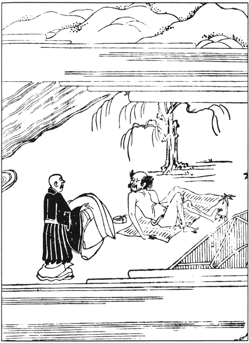 — А давайте полюбуемся цветами в саду! — достал сакэ и закуски, и они начали пировать. И вот наконец тот монах сказал: