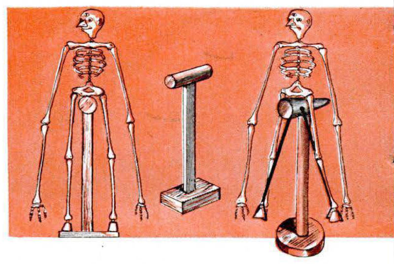 Перед нами номер американского журнала. На одной из его страниц изображено странного вида кресло, в котором расположился костяк еще более странного человекообразного существа с очень длинными конечностями — на верхних по три пальца, на нижних копыта, — с маленьким круглым черепом и птичьими чертами лица. Журнал этот отнюдь не из тех, которые посвящены фантастике: это научно-популярный журнал «Попюлер Сайенс» за октябрь 1952 года, а рисунок относится к статье о том, чем заняты сейчас студенты Массачусетского технологического института.