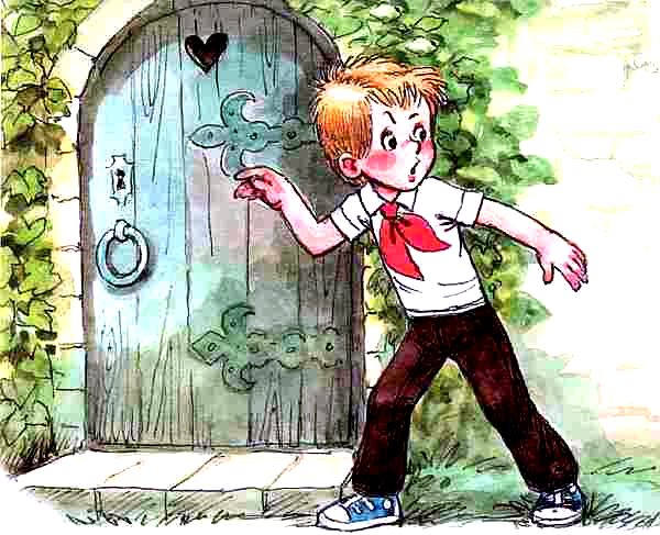 — Дёрни за верёвочку, дитя моё, — говорил при этом Петя, — дверь и откроется.