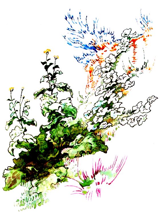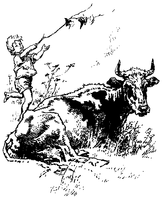 Игнашка маленький, а имя у него солидное — Игнатий. А корова Мукалка — вон она какая! Огромная! А зовут её Мукалкой потому, что, когда была она телёнком, очень любила подолгу протяжно мычать. Стоит и мычит. Вот её и прозвали — Мукалка. У мамы отпуск. Она взяла Игнатика с собой косить траву для Мукалки. Мукалка пасётся рядом, возле леса. Лес нагрет солнцем, и из него пышет жаром. Когда дома из печи вынимают пироги или борщ, жар пахнет пирогами или борщом. Даже на улице слышно, что в этом доме пекли или варили. А лесной жар пахнет смолой и хвоей. Сначала Игнатик смотрел, как падает трава под косой. Подгибается и валится рядами. Мышиный горошек щупает воздух завитыми усами. Зацепиться не за что. горошек цепляется за траву и падает вместе с ней. Игнашка замечает в траве алые капли земляники. Он выпутывает ягоды из травы. Ягоды большие и очень спелые. Тут их некому собирать, сенокос далеко от деревни. Иногда трава разрезает ягоды. Игнашка пачкает пальцы соком. Теперь его пальцы сладко пахнут. Вот пчёлы и шмели налетят! Он боится шмелей и пчёл и скорей облизывает липкие пальцы. Соберёт горсть ягод — и в рот. Соберёт другую — и в кружку. Это для мамы. Она устанет, захочет есть, вот ей будет угощение. Корова не рада простору, солнцу и даже траве. Её замучали оводы. Мукалка щипнёт раз-другой траву и давай мотать головой, хлопать ушами и колотить себя по бокам хвостом. Она дёргает всей шкурой на спине и боках, но оводы не боятся. Слетят, покружатся над ней, выберут себе место поспокойнее и снова усядутся, жалят Мукалку. «У-уу! — жалобно кричит корова.- М-муу!..» — М-му-хи м-меня жгу-ут! — переводит Игнашка. И спрашивает корову: — Ты чего же, такая большая, а говорить не умеешь? Скажи: мухи… «Ууу-у!» — горюет Мукалка. Игнатику её жалко. Он берёт длинную ветку и сгоняет с коровы слепней и оводов. Мукалка довольна. Подгибает ноги, ложится на землю, чтобы Игнашке было удобнее её обмахивать. Она громко вздыхает, поворачивает к Игнашке свою тяжёлую морду и ласково моргает. Игнашка бегает вокруг неё, машет веткой. Жарко. Рубаха прилипла к спине. Ноги путаются в траве. Всё труднее бегать. Игнашка устал. — Моргаешь, моргаешь,- говорит он корове.- Разлеглась, ишь какая! А я тебе бегай… У меня у самого много дел.- Он бросает ветку. Мухи снова накидываются на корову. Она вскакивает и бежит к кустам. Шшу-рхх! Шш-у-урх-х! — корова боком вламывается в кусты. Ветки хлещут её по бокам, сбивают мух. — А ты у нас хитрая! — радуется Игнашка.- Вот что придумала, молодец! Он идёт в лес. Входит под свод больших сосновых веток. На земле среди рыжих игл и шишек с растопыренной чешуёй что-то вдруг подскакивает. Сначала Игнашка не понимает, что это. То ли комок земли, то ли круглая шишка. Оказывается, лягушка. Она такого же цвета, как мох, земля, хвоя. Спина и бока разрисованы точно так же, как разрисована сухими тенями земля под сосной. Лягушка замерла. Она думает, что её не заметят, если она будет сидеть смирно. — А я тебя вижу! — сказал Игнашка. Она не шевельнулась. — Я тебя вижу! — крикнул Игнашка. Она не испугалась. Припала к земле животом и почти не дышала. — Ты что, глухая? — спросил Игнашка. Он сел на корточки, чтобы получше разглядеть лягушку.- А-а. у тебя нет ушей! — наконец догадался он.- Вот почему ты не слышишь!