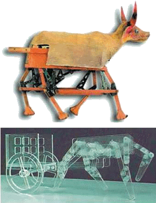 Впрочем, механизмы, позволяющие сконструировать нечто вроде четвероногой шагающей куклы, тоже не запредельно сложны. В этом случае не механический зверь тащил повозку, а она «толкала» его перед собой (её же саму двигала впряжённая сзади лошадь — или толпа китайцев)… короткое расстояние и по хорошей дороге. Практического смысла в этом не было, но такая демонстрация чуда способна оказать огромное психологическое воздействие.